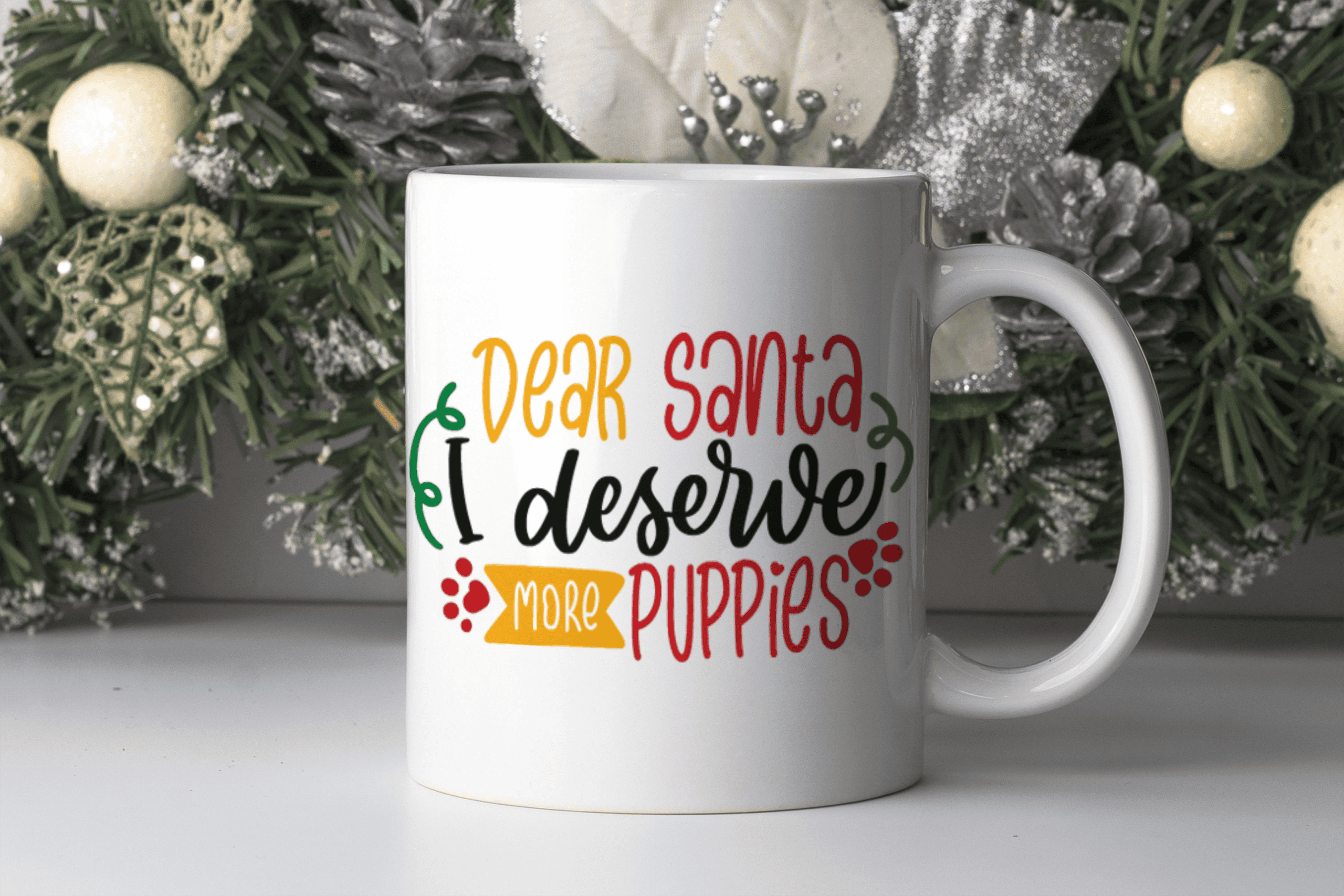 A mug with Dear Santa, I Deserve More Puppies designed on it.